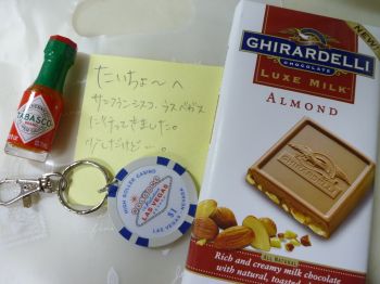 ロッカーが一緒なんで、着替えようとロッカーを開けたら、メッセージと共にお土産が置いてあった