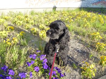花とゆきちのショットがなかなか撮れないから、こっそりとパンジーの花壇に入ってもらって写してみたの♪