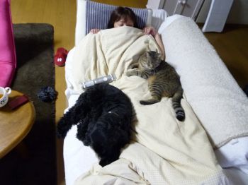 その後ゆきちもやってきて、遠慮がちに横の方で寝てたけど、こんな状態じゃ身動き一つできないよ~~~(><;)!!