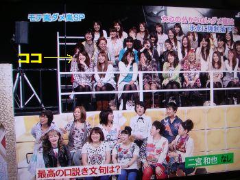 会話中にふとお嬢が「そう言えば今日のひみつの嵐ちゃんに○○(東京の大学に行ってる近所のお嬢)が映るかも?スタジオ観覧に行ったらしいけど、何と1番の席だったんだって」って言うんで、とりあえず半分くらい終わってたけど、録画しながら一緒に見ていたら、何と何回も映るじゃな~い\(◎o◎)/!