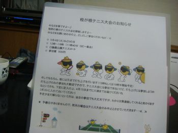 GW恒例のテニス大会の幹事を引き受けたんで、案内を作ってテニス仲間に配布しておいた