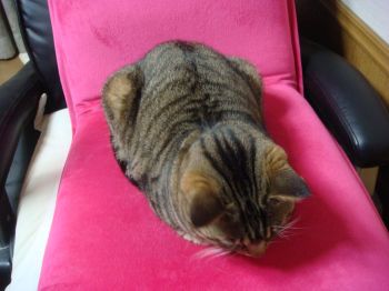 掃除機をかけるため、座椅子をちょっとマッサージチェアの上に乗せておいたら、そこがお気に入りになっちゃった?