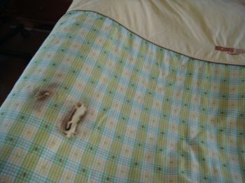 読書してると布団から出てる手が冷たいと、電気ストーブをつけたものの、睡魔には勝てずに寝ちゃったんだとかで、掛け布団を焦しちゃったんだよ~~~!?