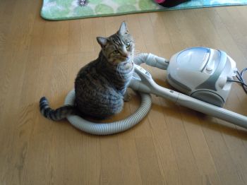と、ひとりでせっせと掃除しながら作業をしていたら、出しっぱなしにしてた掃除機のホースの間にちょこんと座ってるたいし発見~♪