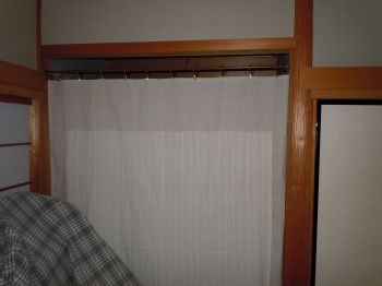 『そうだ!見えなきゃ気にならないだろう』(違うだろ・・汗)と発想の転換をして、床の間にカーテンをつけて隠すことにしたv(*^^*)v