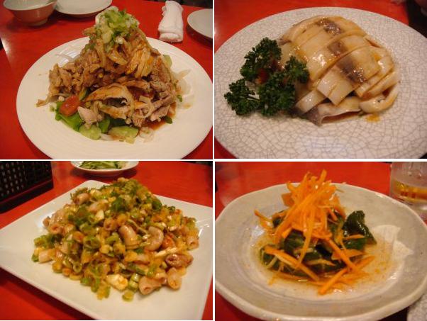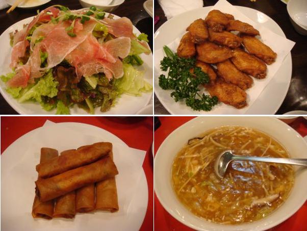 生ハムサラダ・手羽先の唐揚げ・春巻き・フカヒレスープ