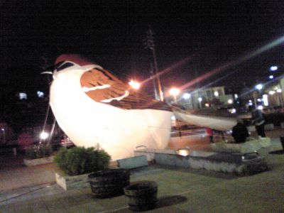 地下から地上に上がってすぐの駅前だから、リニモに乗ってる人から見えるように、高架を向いて鎮座しておりました