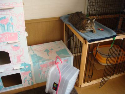 ゆきちのフード入れを落とし、ちゃっかり自分の場所にしてやんの・・・( ▽|||)