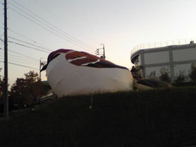 ココは【文化の家】って言う、コンサートホールや会議室、展示室なんかがある施設入口付近の空き地なんだけど、今日はこ~んなデカイ物体が鎮座してたよ