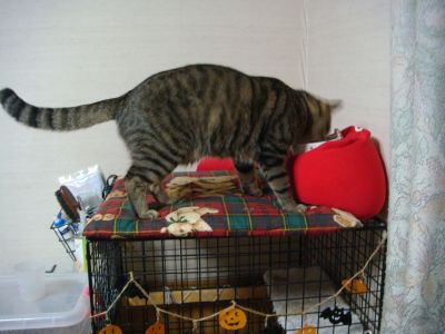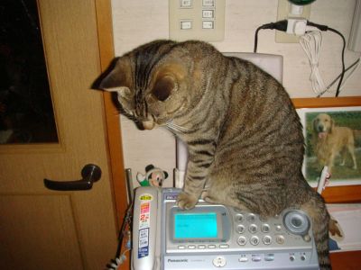 キッチンのドアを付けてから、何とかしてキッチンに入れないかと思案してるらしく、気付くと電話の上を徘徊してるの(+_+)