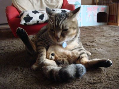 新しく仲間入りしたにゃんこのたいしさん、毎日ゆきちを追っかけまわしております・・・(;^_^A