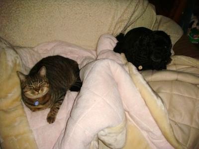 ゆきちったら、いつもなら絶対たいしと同じソファーでなんて寝ないのに、わざわざ2つ折りにしてあった掛け布団の間に入り込んで、たいしとの間に山を作ってまで、このフカフカの上で寝たかったのね~~~