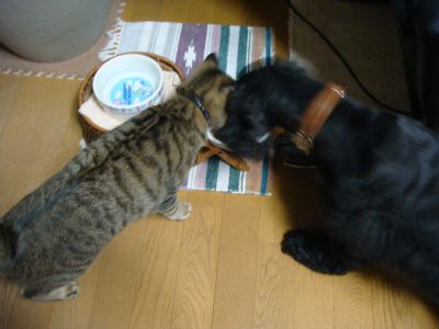 初めはゆきちのご飯を先にしてたけど、たいしったらニャウニャウうるさいし、自分のご飯を先に貰えないとゆきちのご飯を食べちゃうから、仕方なくたいしのご飯を先にするようにした