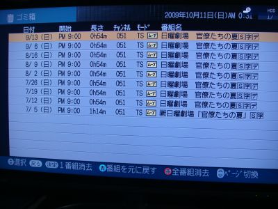 我が家のテレビはあたし専用なんで(笑)、せっせと録画し見たら消去してるんだけど、今ゴミ箱が面白いことになってるよ~~~
