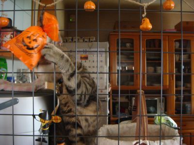 そして何食わぬ顔でカウンターに上り、ハロウィンの飾りで遊んでるよ~~~~(>_<)