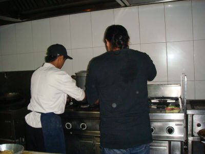 ブディさんがせっせと鶏肉(多分)を炒めております