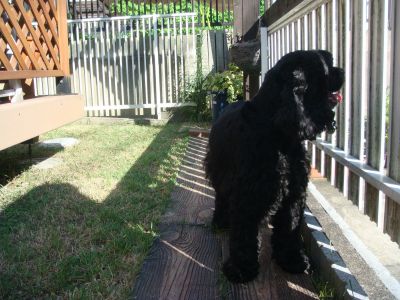 犬って怖いと尻尾を隠しちゃうって言うけど、この床にお尻をくっつけて、さらに後ろ向きになるポーズってのは、怖い時のポーズなんだろ~ねぇ・・・(;^_^A