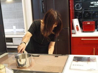 単なるショールームじゃなく、システムキッチンの紹介の他に、IHクッキングヒーターを使って実際に料理したり、盛りだくさんのイベントが行われてるんだとか