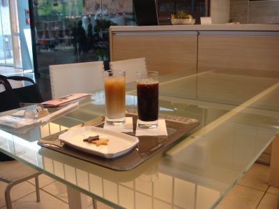 じゃあココでお茶にしようとドリンクを注文したものの、1階の空間すべてがキッチンのショールームみたいになってるし、一体ドコに座るの???