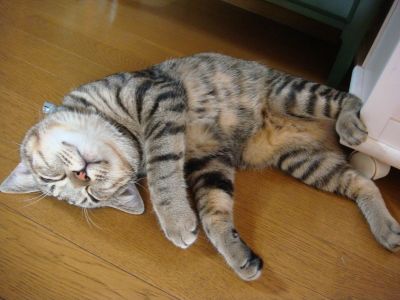 ゆきちはいつものお行儀のいい昼寝ポーズだけど、笑えるのがこの方、たいしさん・・・
