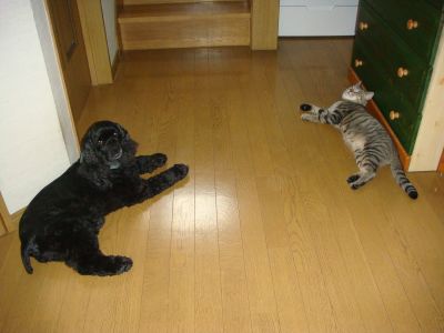 掃除の邪魔をしたかと思ったら、今度は仲良く昼寝ですか?