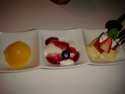 のん兵衛じゃないあたしともう一人の友だちのために、3種のデザート付きコースにしてくれたんだけど、料理多すぎだよねぇ・・・(;^_^A