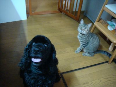 熱いから冷ましてたら、ゆきちもたいしもキッチンの中に侵入してきて、「早くくれ~~~」とアピールしまくり(^_^;