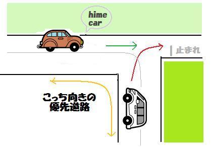 だからあたしは優先道路から直進って形になって、相手は優先道路から右折になるのね