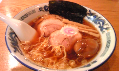 チャーシュー3枚と味付けたまご入りの細麺、特性ラーメン醤油味で、1人前850円也~(*^^*)