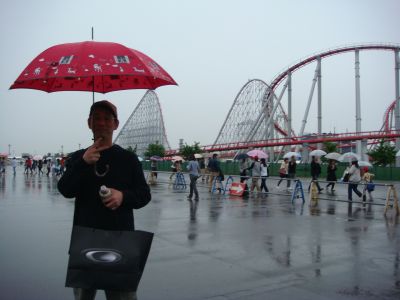 休日は大混雑の遊園地も、この雨でコースターもお休みかな?