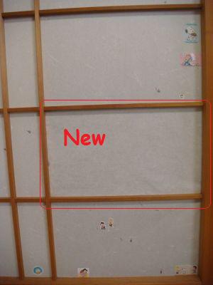 もともとは桜の花びらが入った和紙だったけど、Newってなってる一角が、今回部分張り替えした無地の和紙なのね