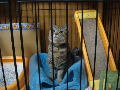 家の中をFreeにしてると、吐いたりグッタリしてても気づかないといけないから、暫くはケージに入っててもらいましょっと