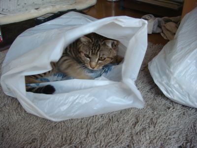 何事かと思えばゴミ袋に入って遊んでるよ~~~~((><;)!!