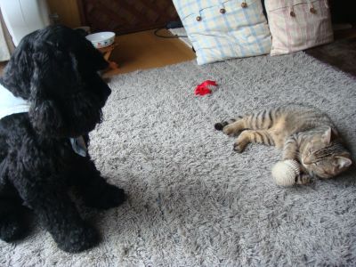 囲いを作りながら、ボールを投げたり猫じゃらしで遊んだりと、まぁ忙しかったこと